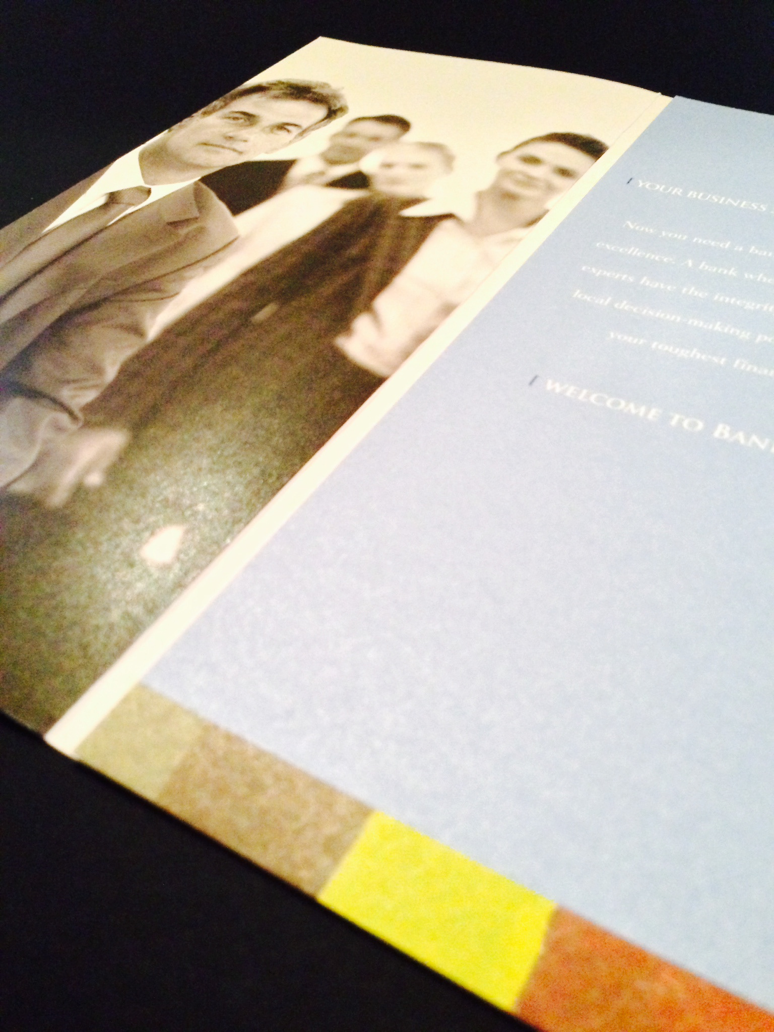 Business and personal banking brochure for bank offices.