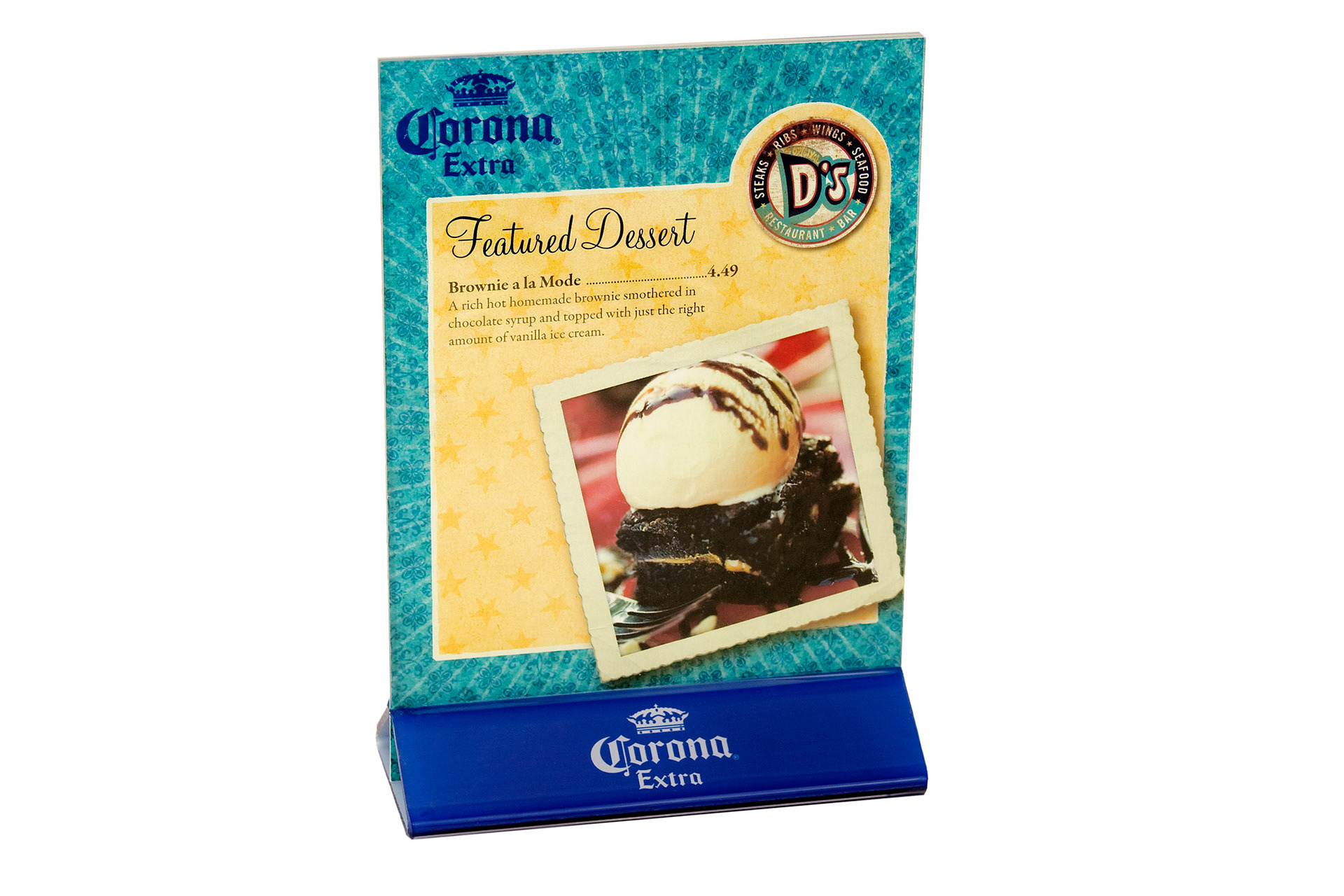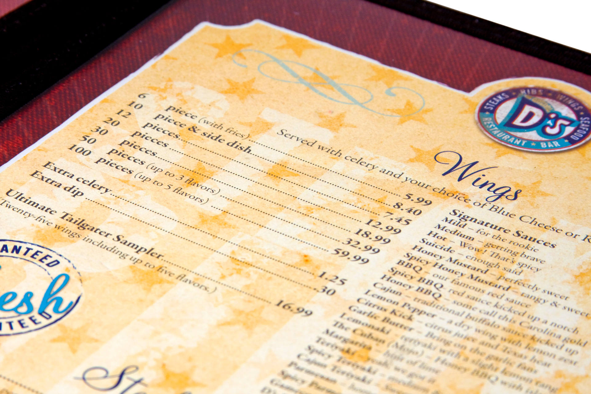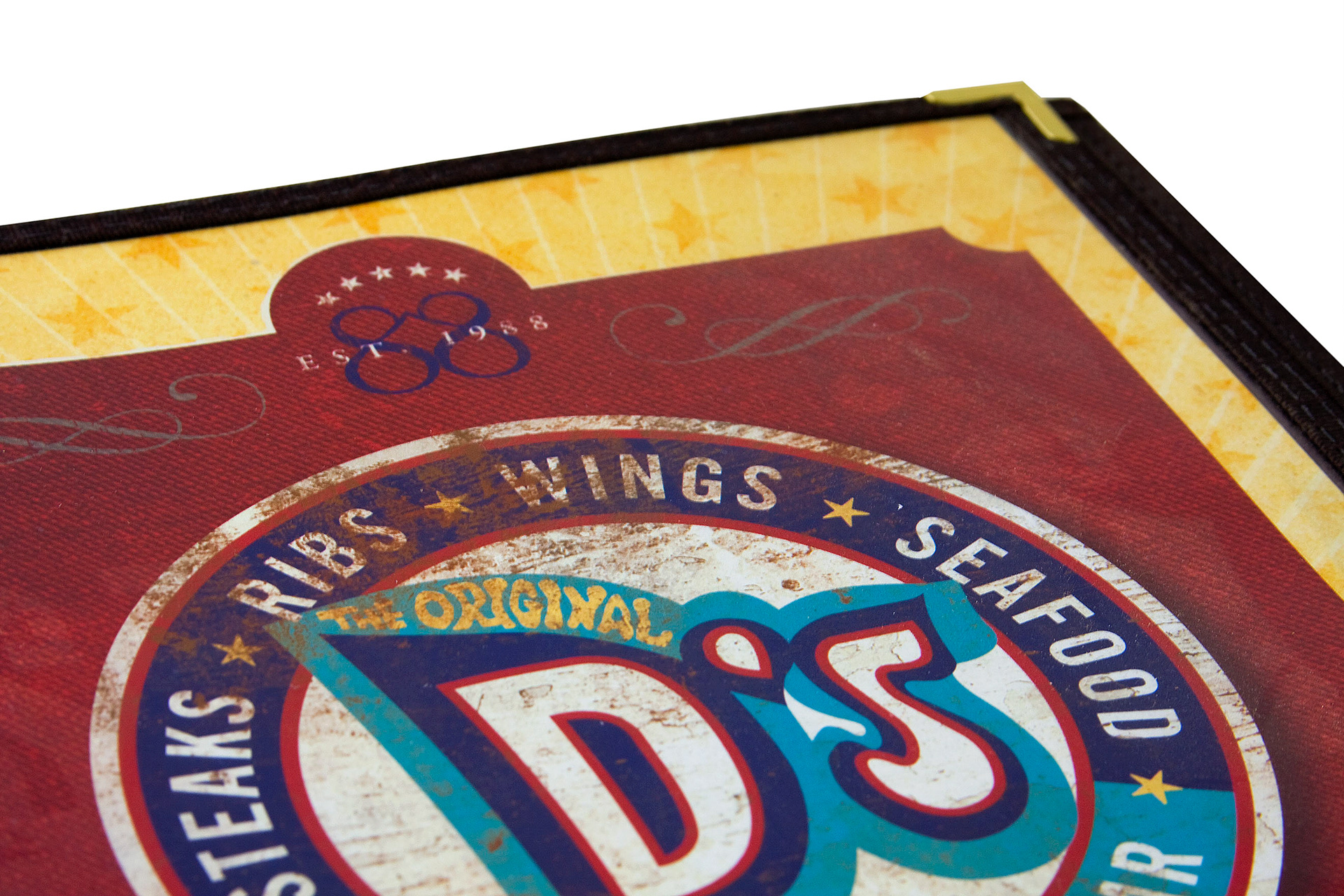 Re-design the menu and table top displays for an 25 year established neighborhood restaurant and bar. The challenge was to make this look new and familar at the same time while promoting a well rounded offering of food items beyond wings.