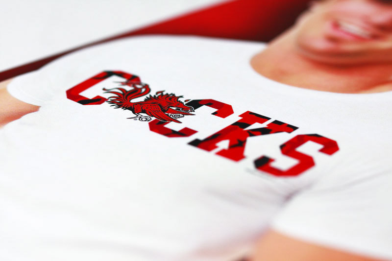 Product development design for Mean Rooster Spirit Apparel featuring the University of South Carolina trademarks.