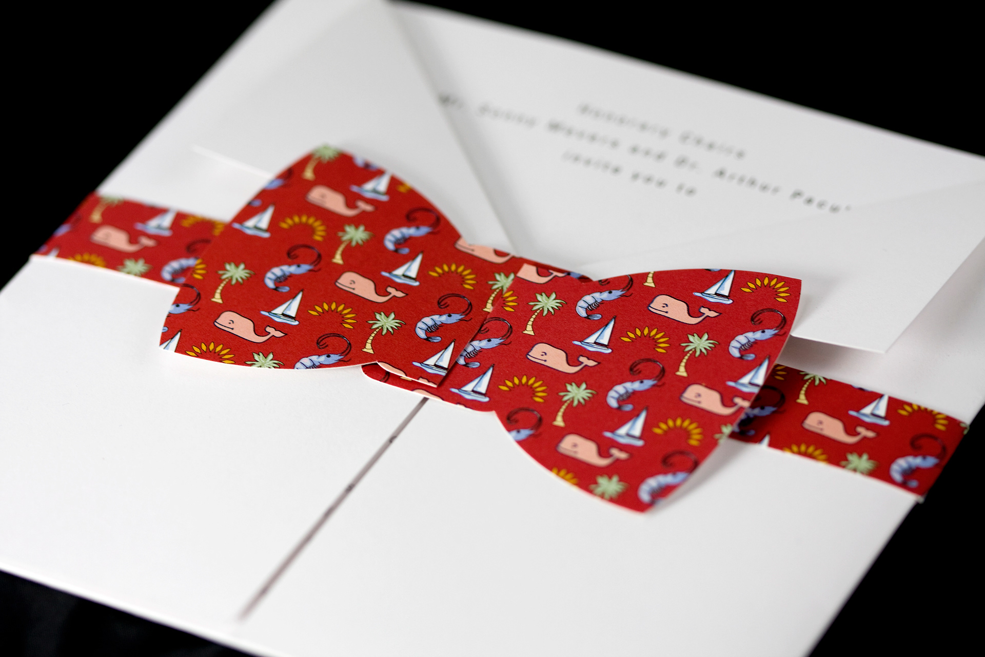 Special invitation and premium design for Tucker Carlon speaking engagement and fundraiser. Specially created invitation and custom created Vinyard Vines ties center around Tucker's penchant for great ties.